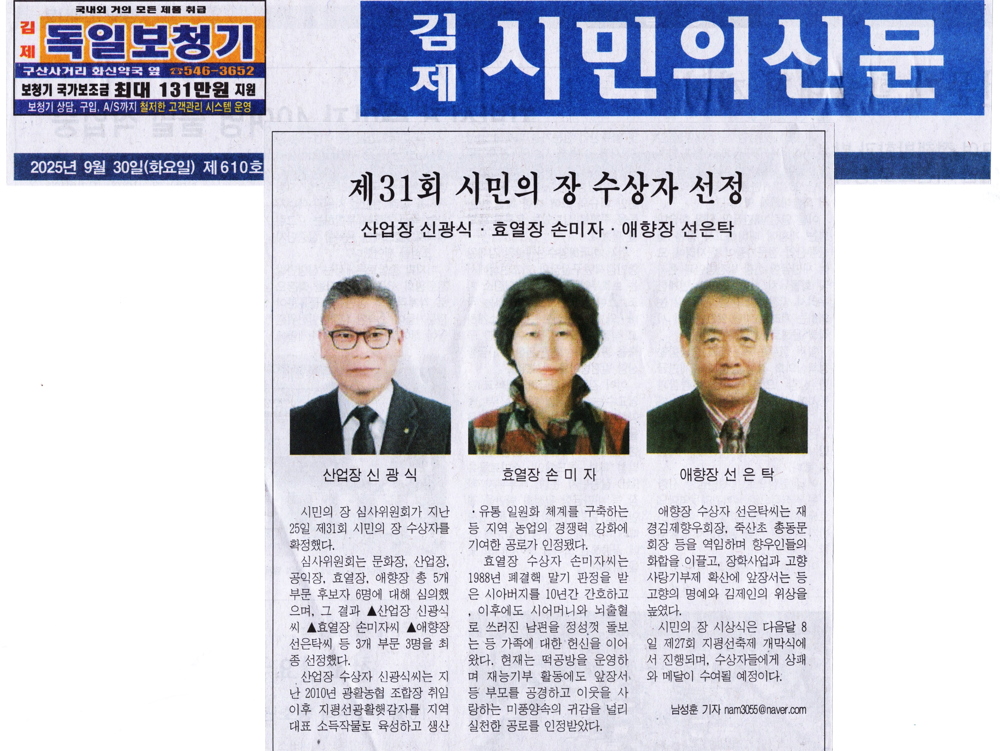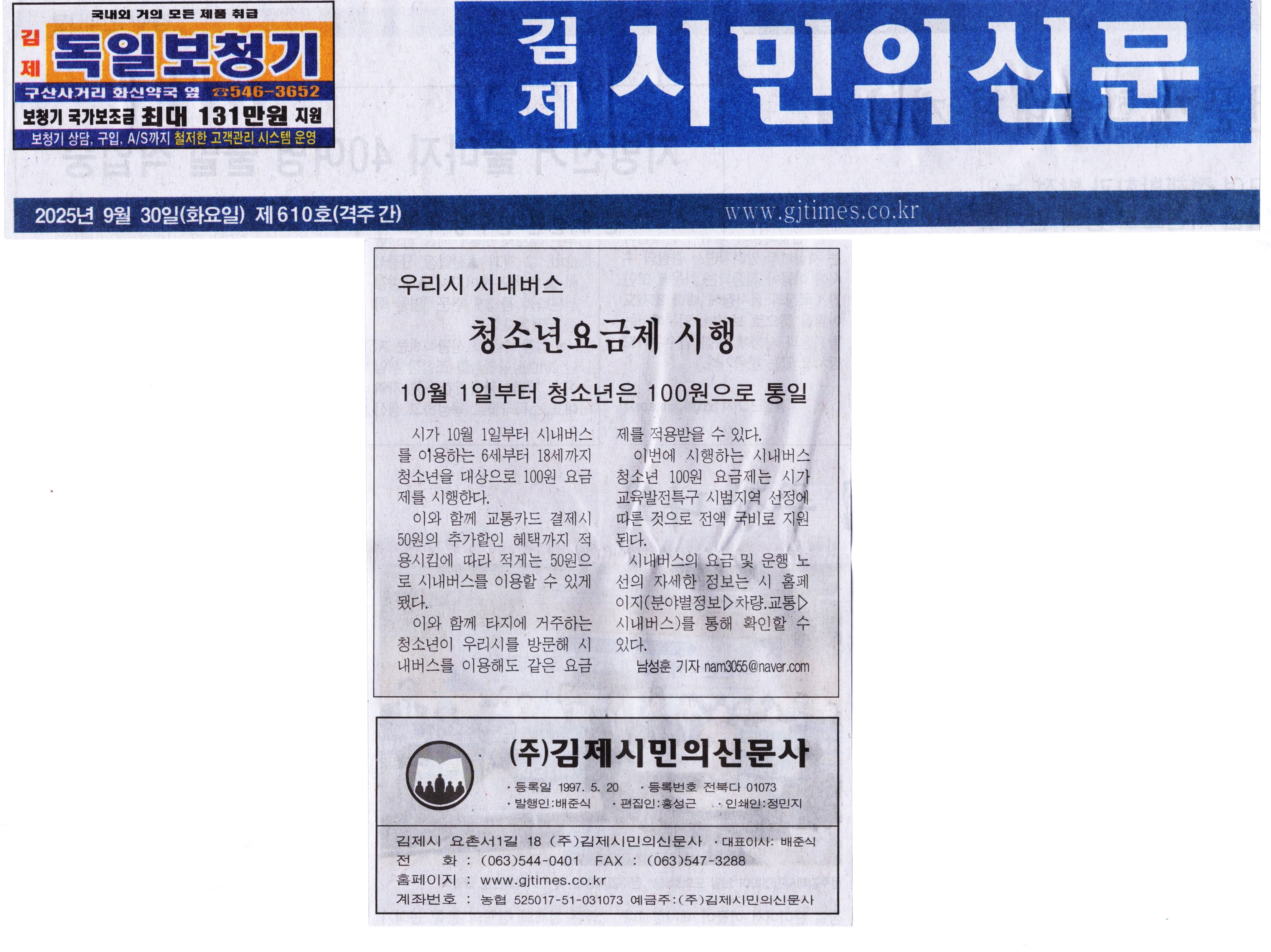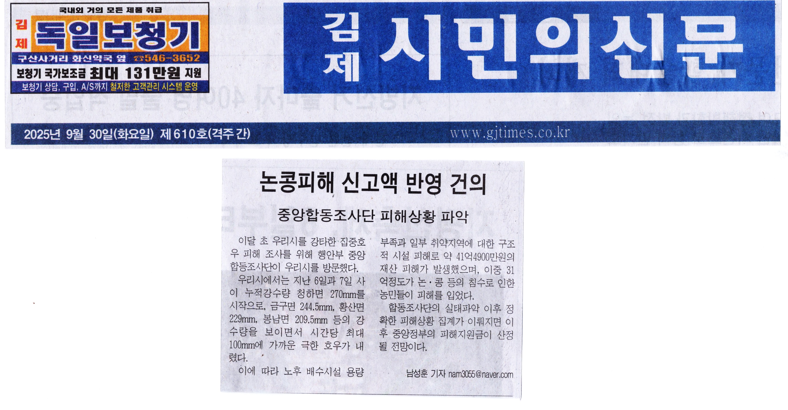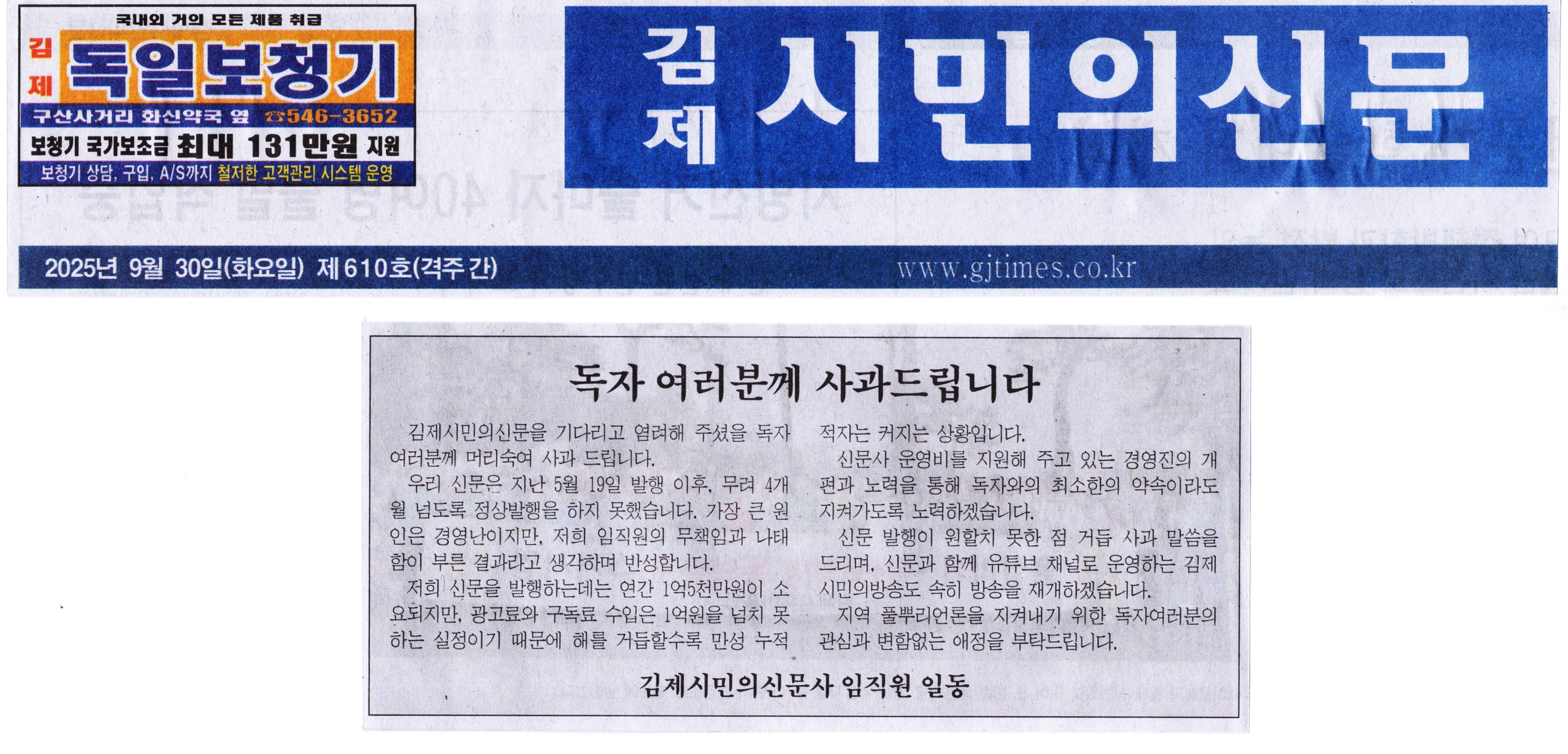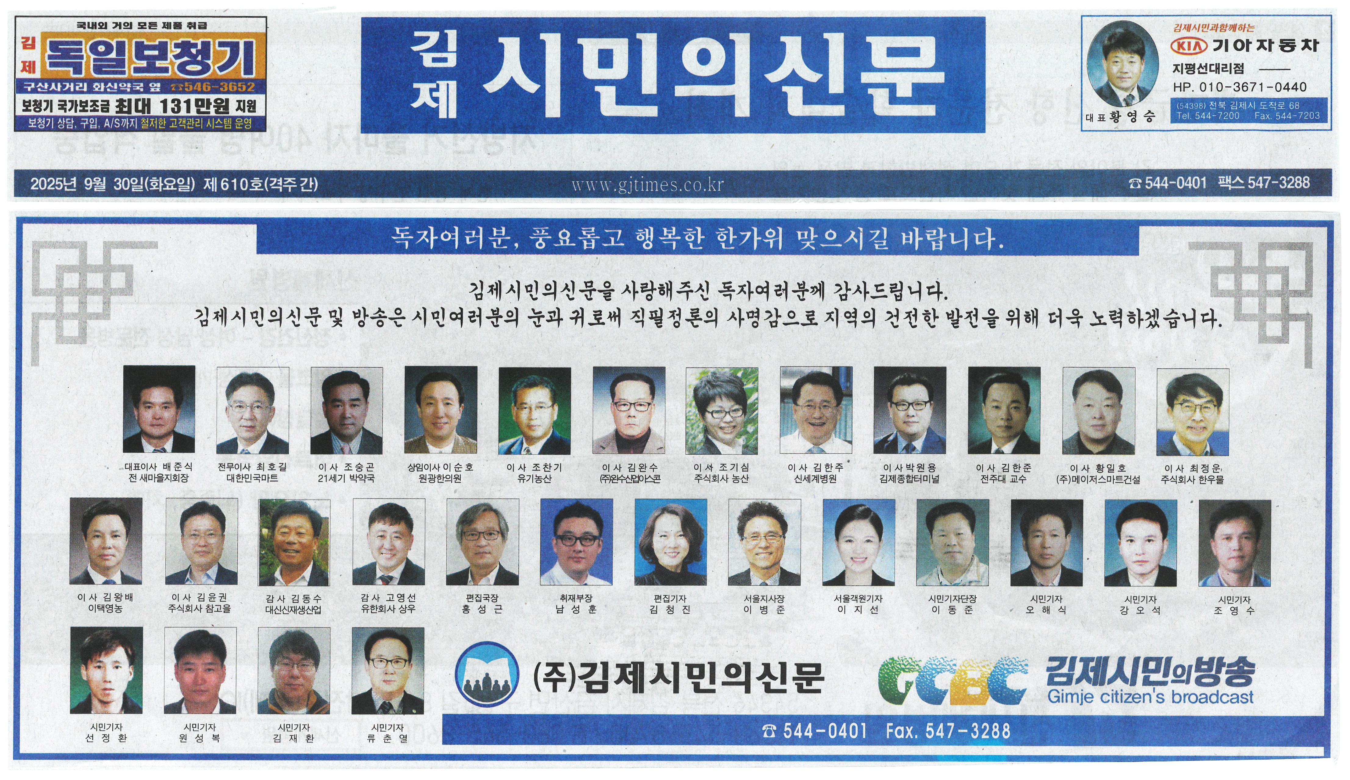김제시민의신문 2025년 09월 30일(화) 제610호