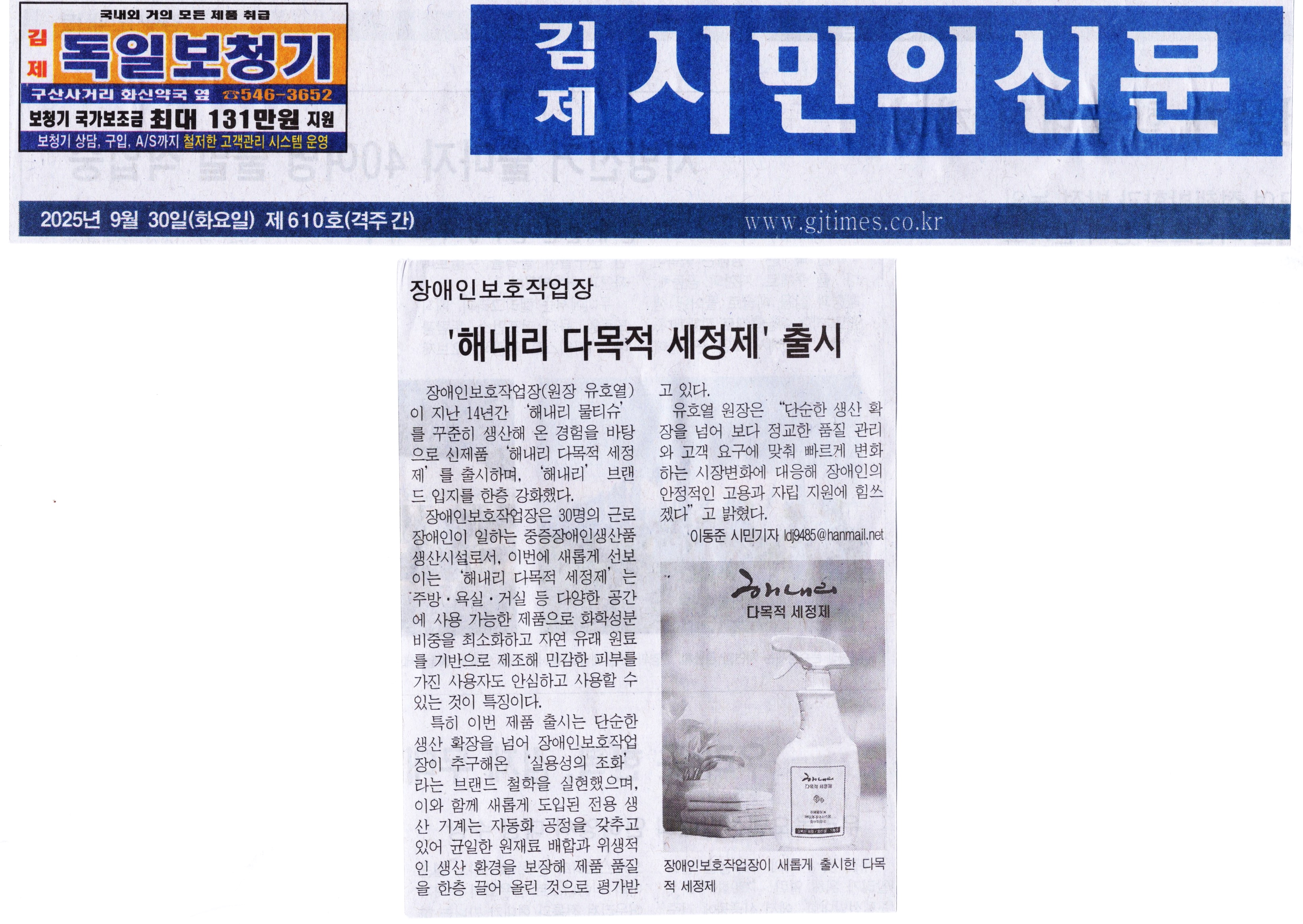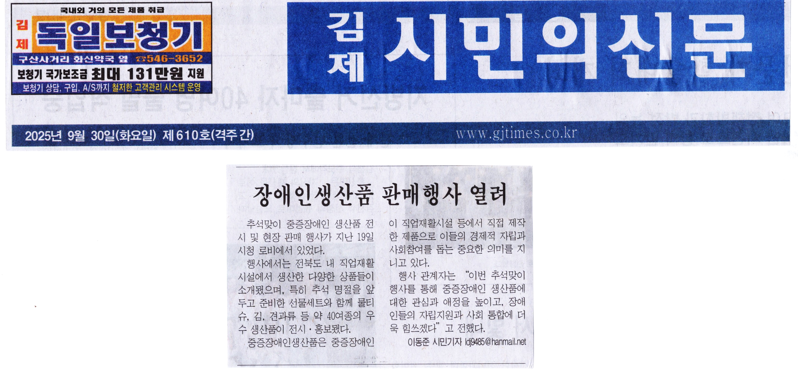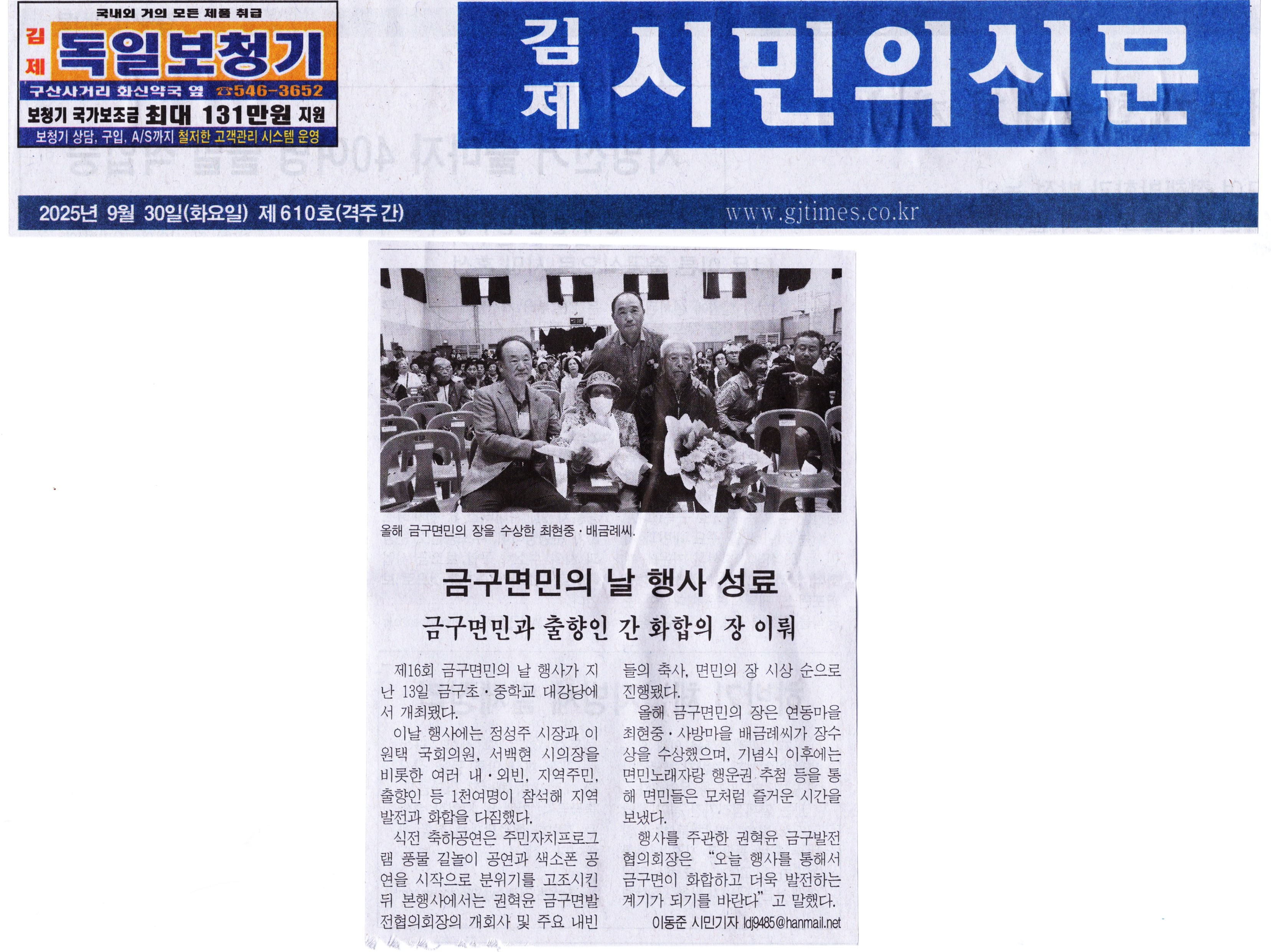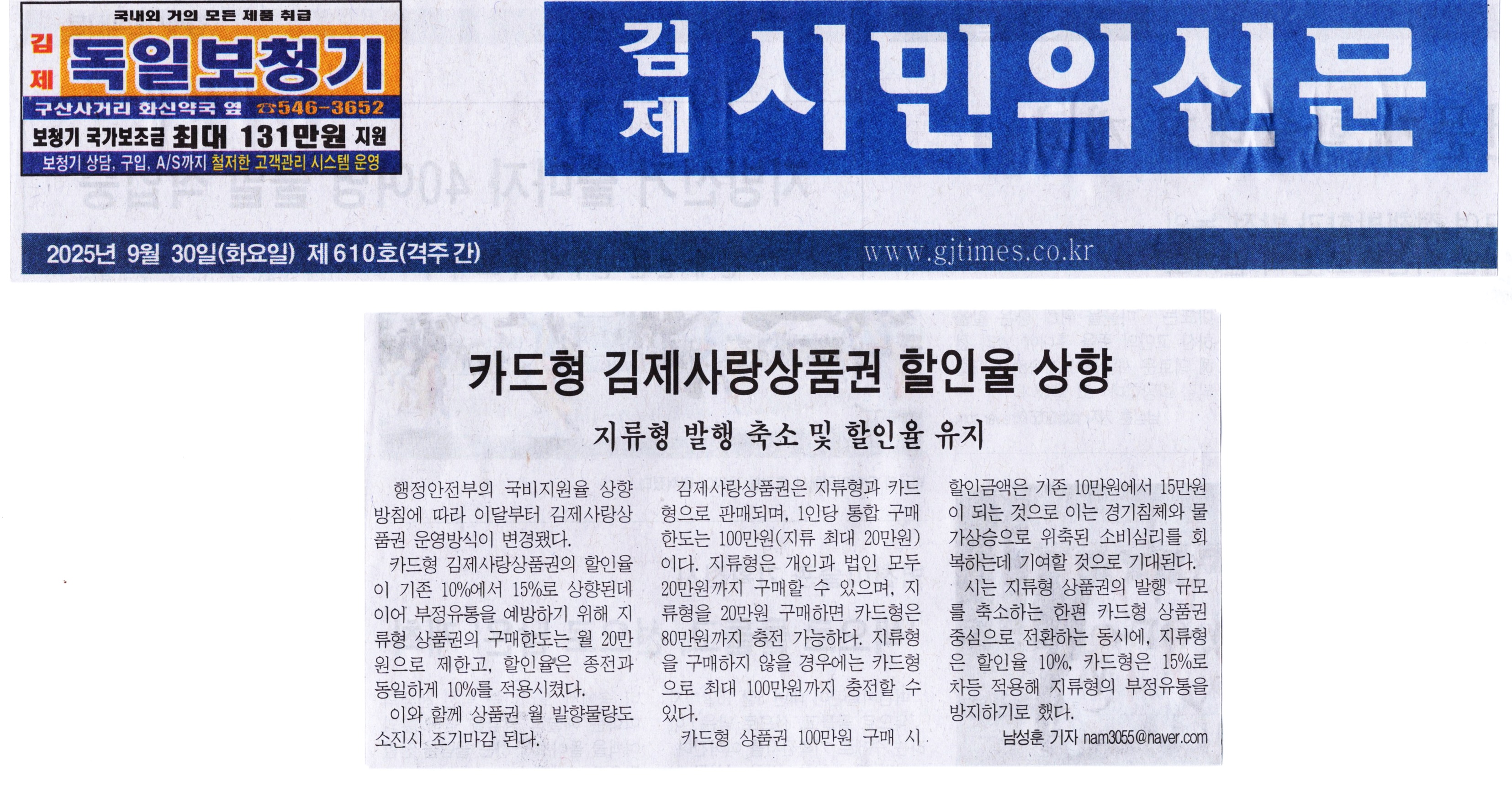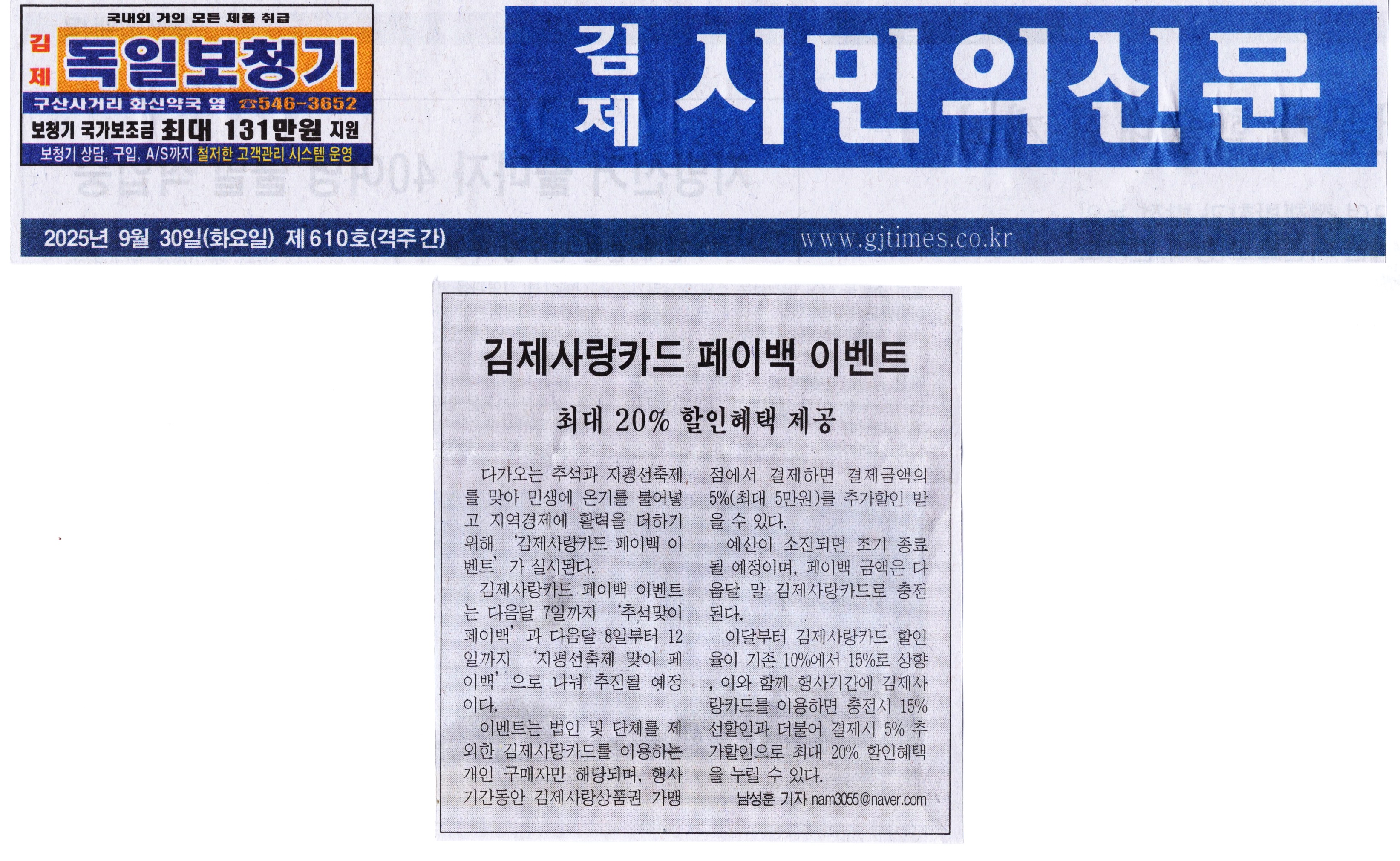 김제시민의신문 2025년 09월 30일(화) 제610호