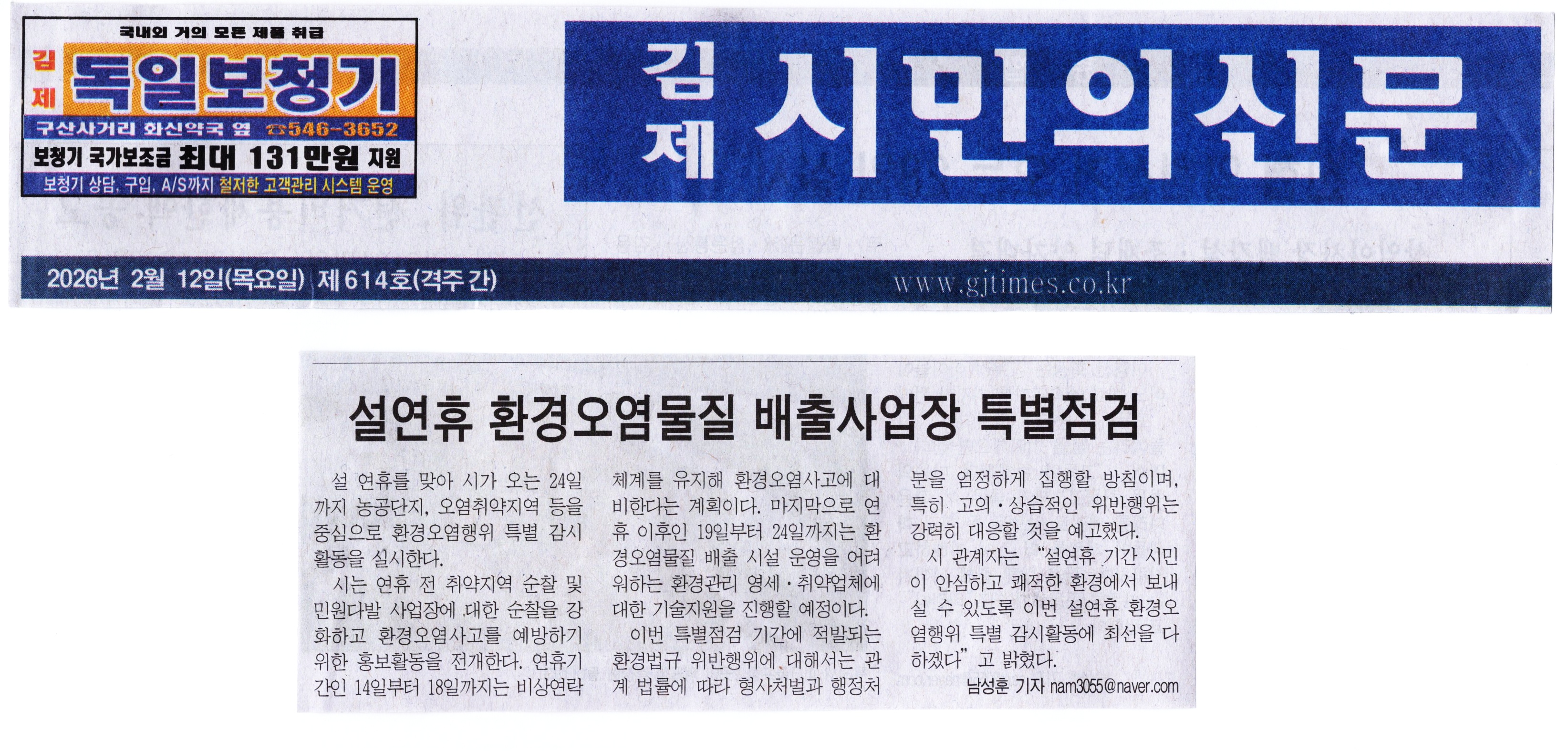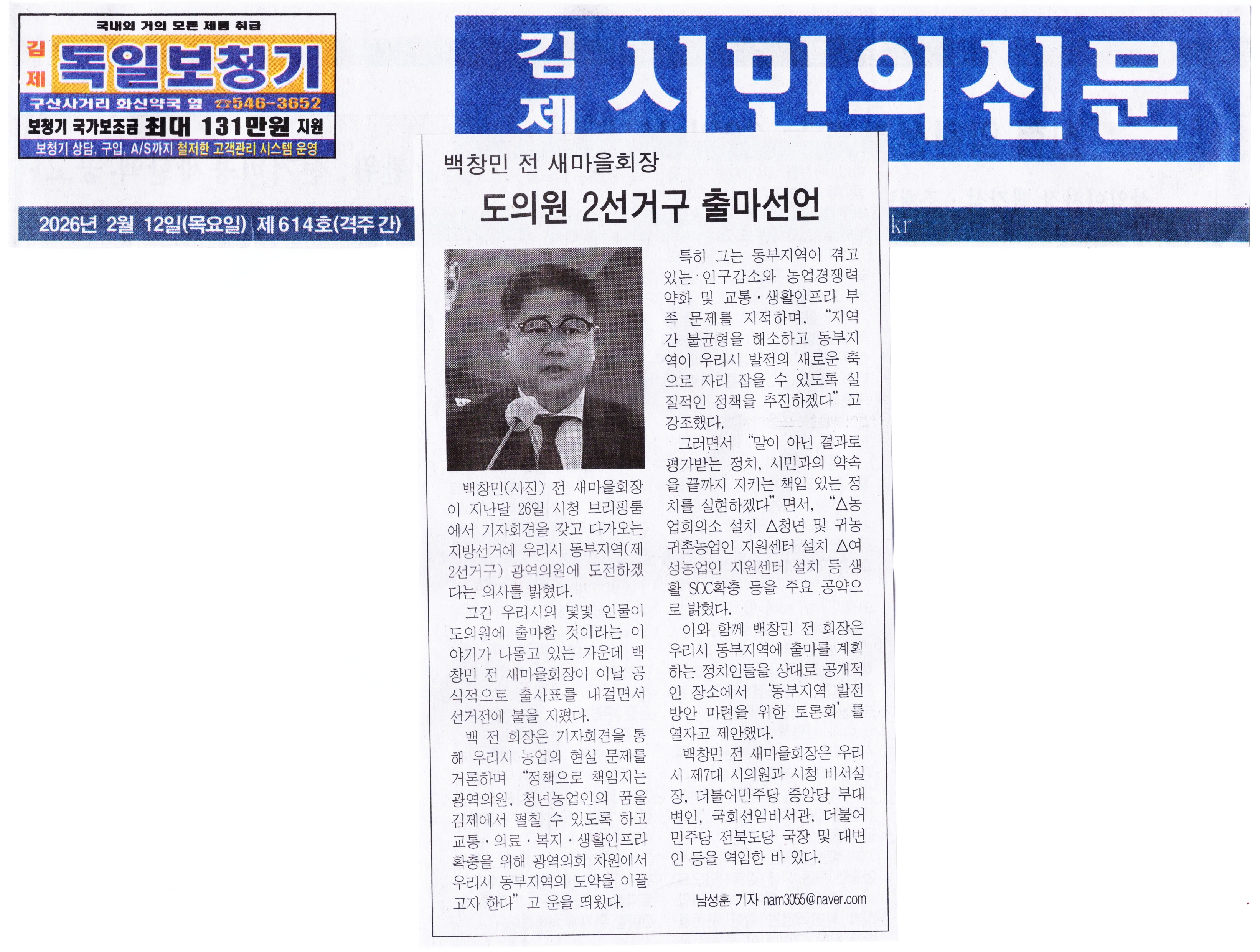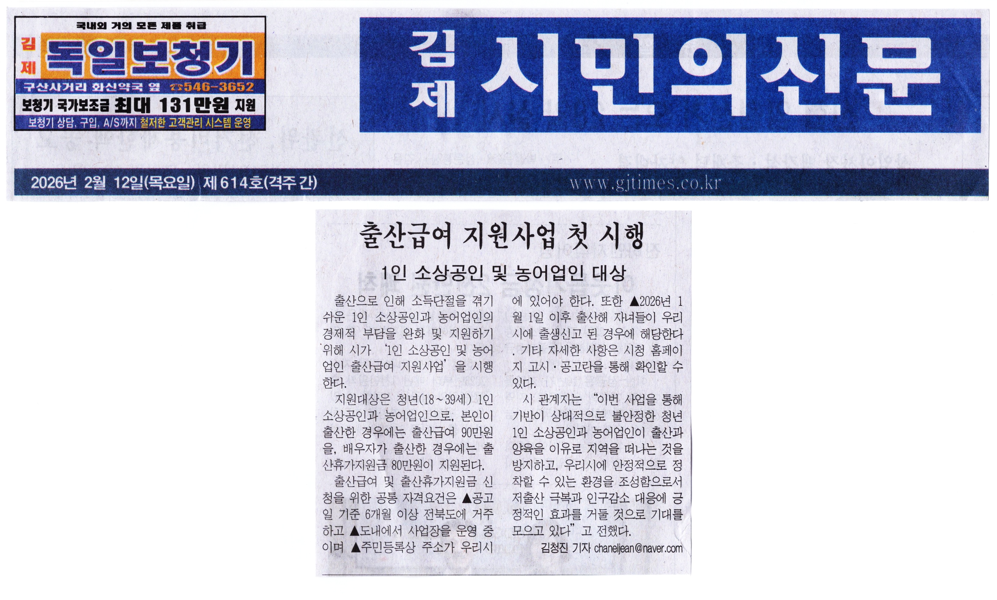 김제시민의신문 2026년 02월 12일(목) 제614호