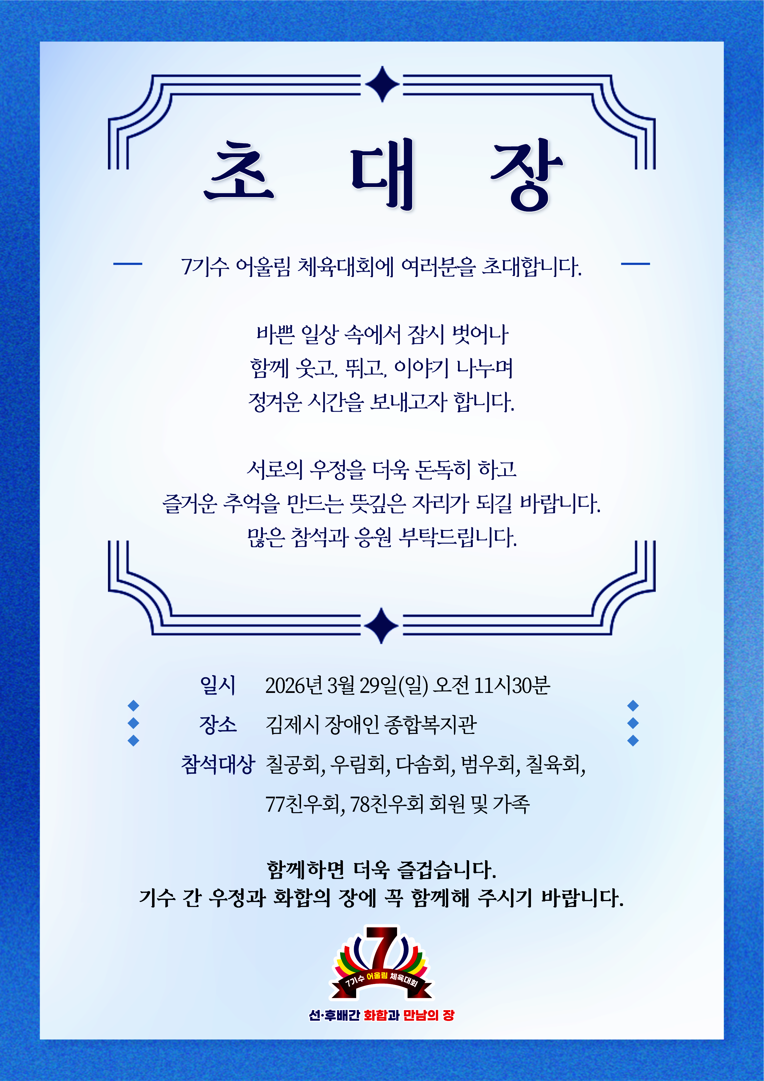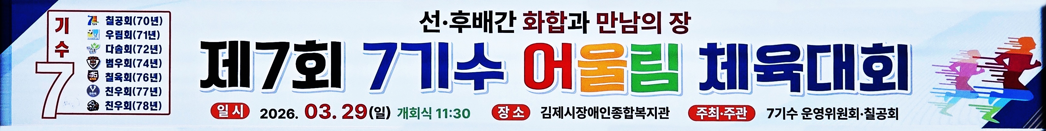 2026.03.29.(일) 개회식 11:30~김제시장애인종합복지관 주최·주관 :7기수 운영위원회·칠공회